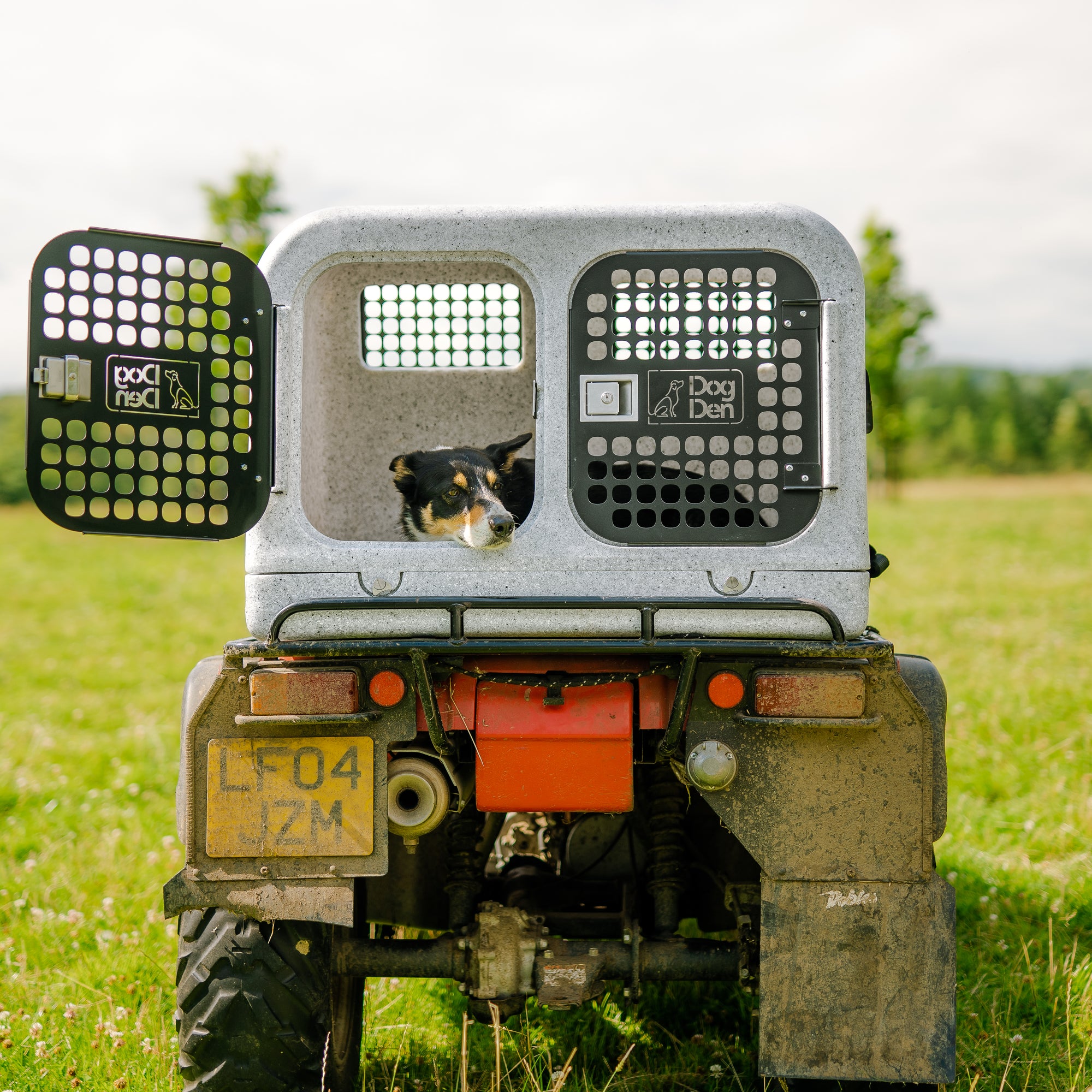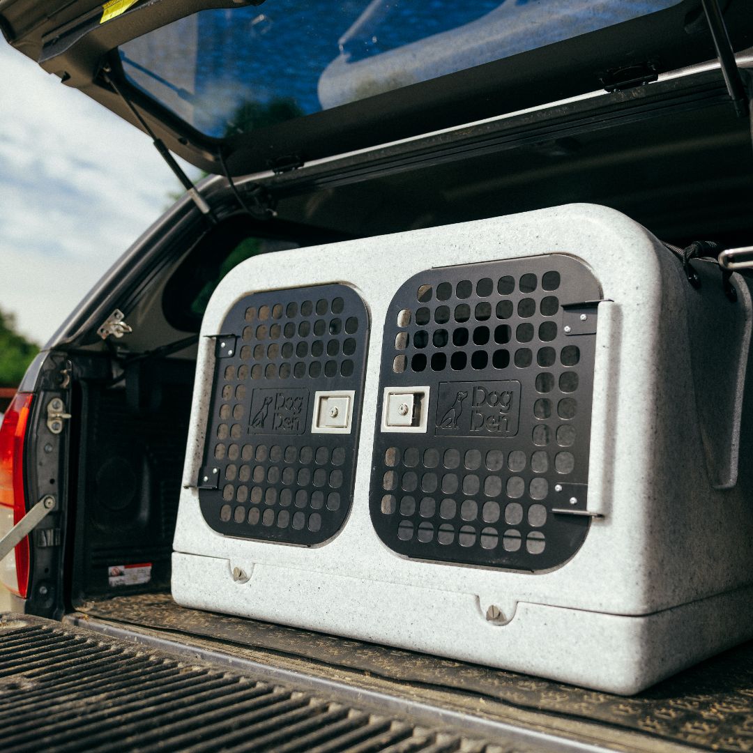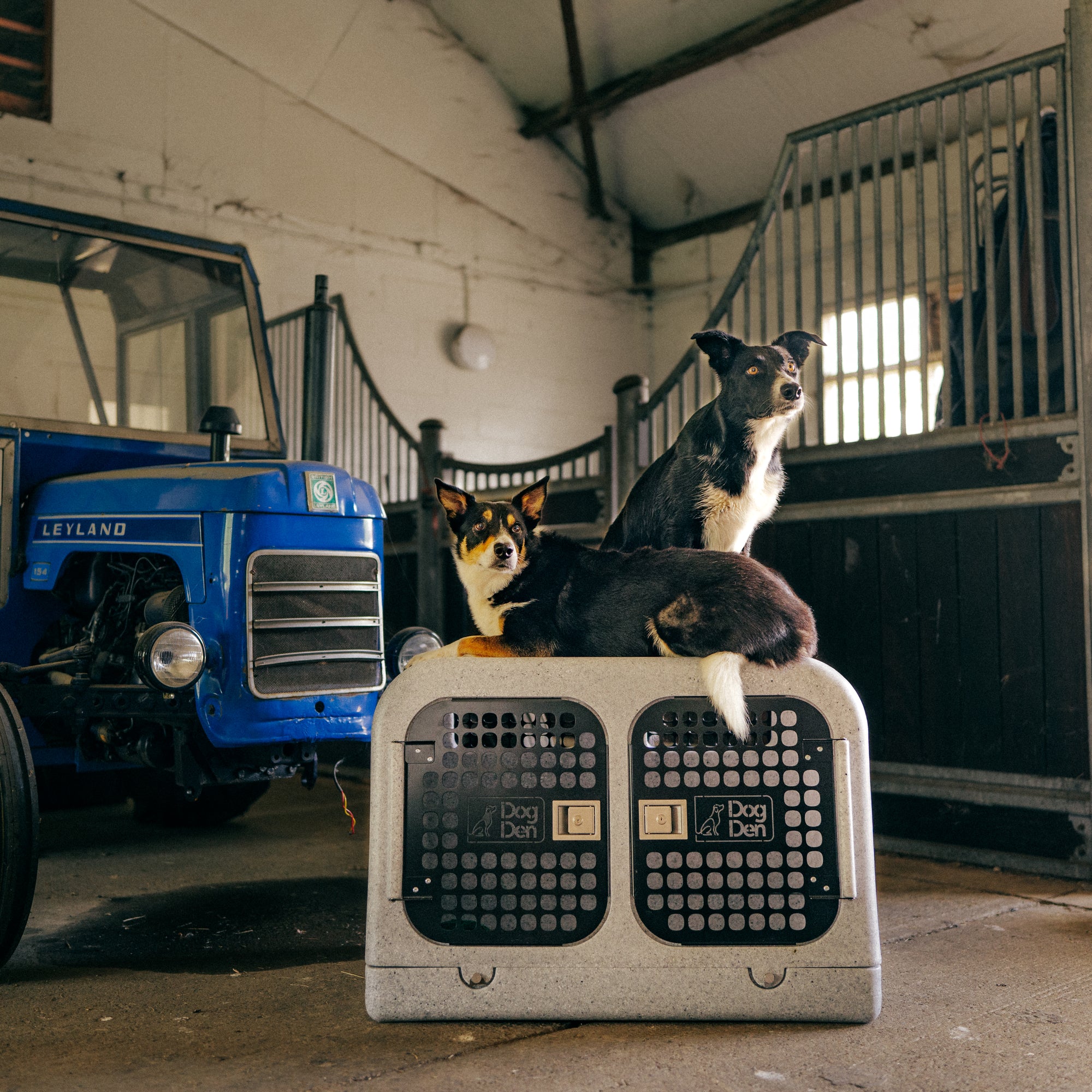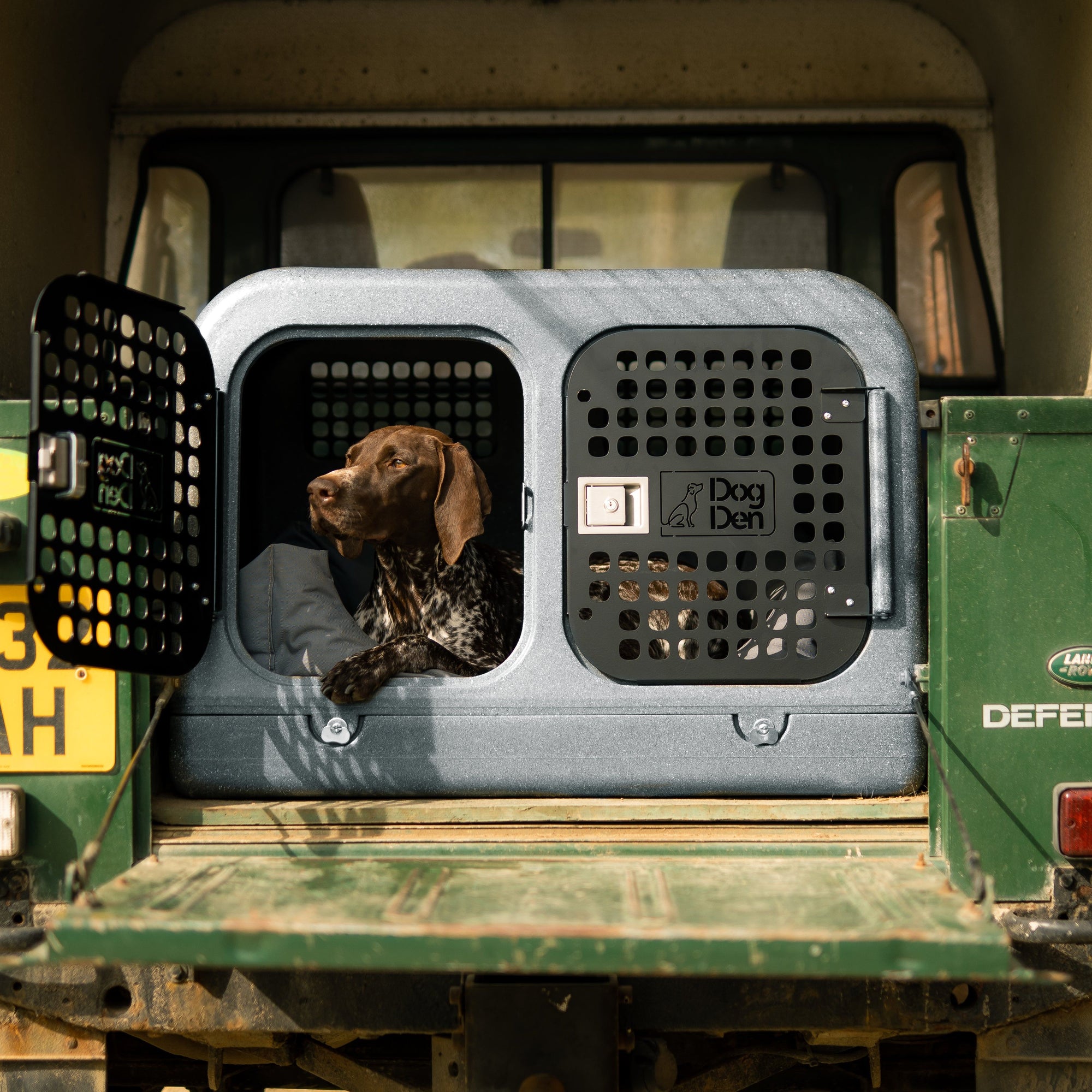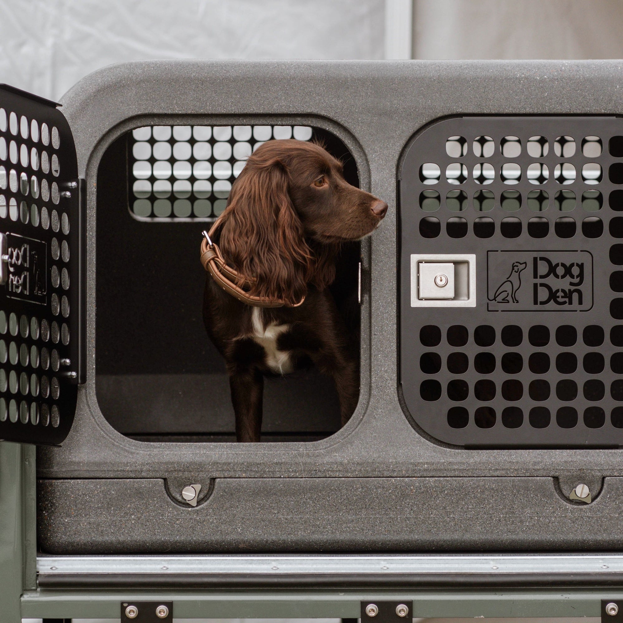 Discover the Dog Den. The UK's first double-wall rotomolded dog crate, designed, built and crash tested in England. Unlike traditional metal crates, the Dog Den is constructed with high-grade, durable double-walled rotomolded plastic. This design provides twice the protection from external forces and acts as a natural insulator, keeping your dog cooler on warm days and warmer on cooler nights.